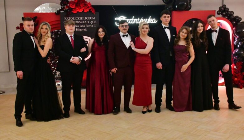 Maturzyści Katolickiego Liceum Ogólnokształcącego im. Papieża Jana Pawła II w Biłgoraju mają za sobą wyjątkowy wieczór! 14 lutego 2026 roku odbył się ich bal studniówkowy – symboliczne odliczanie stu dni do egzaminu dojrzałości.