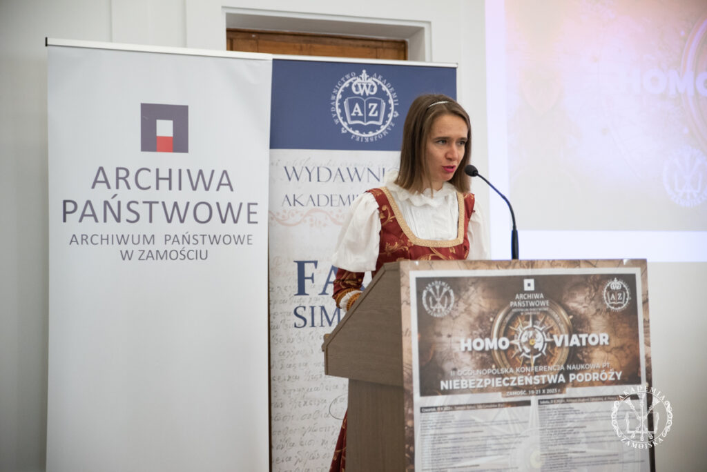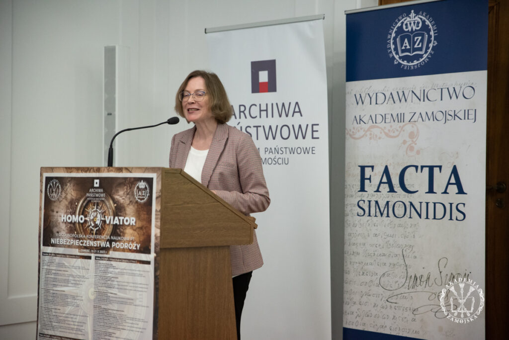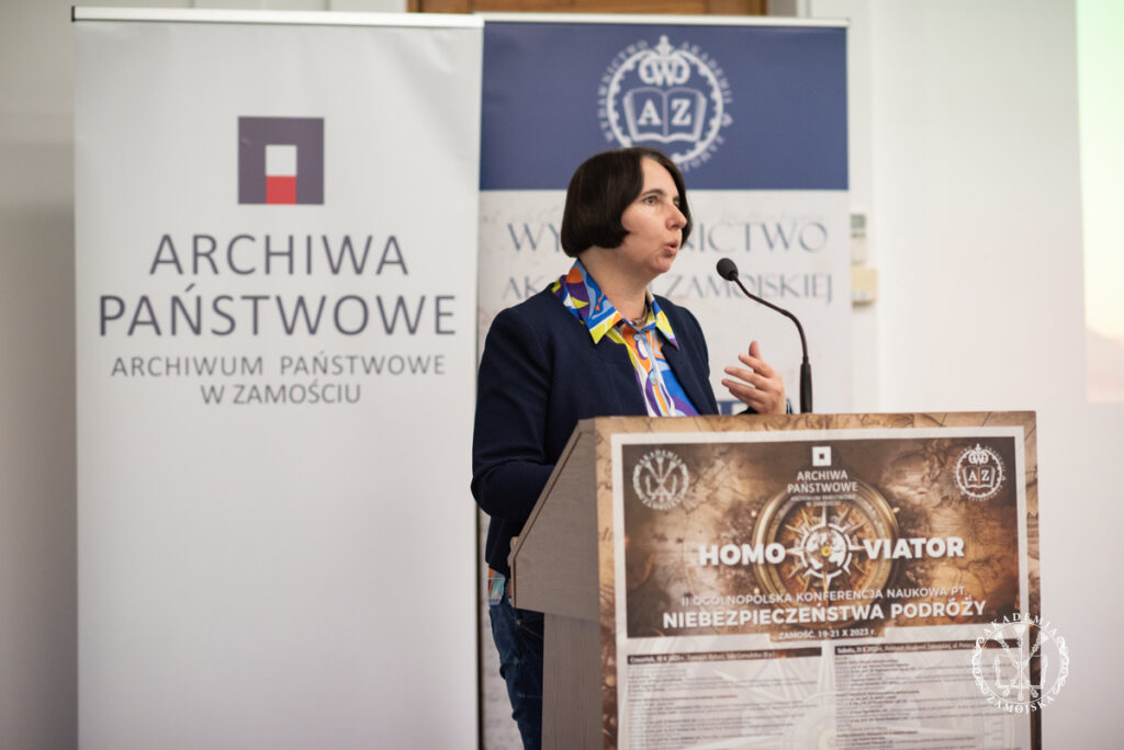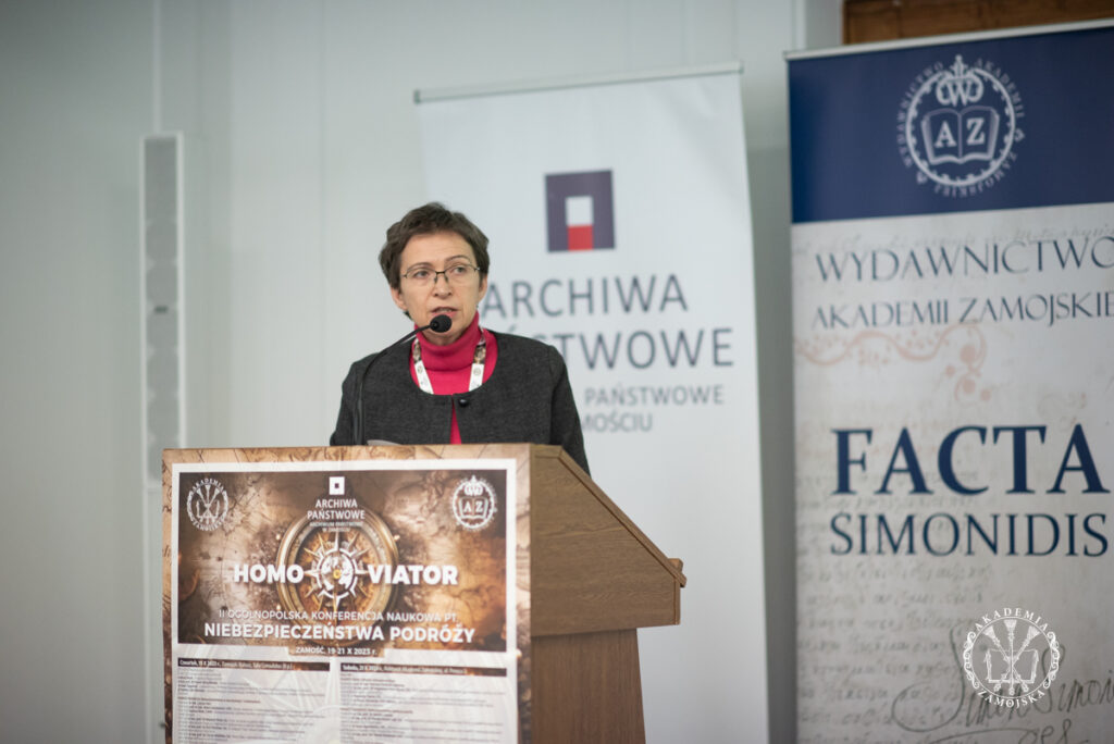 – W ubiegłym roku rozpoczęliśmy cykl konferencji pt. „Homo viator”. Po wielkim sukcesie, w tym roku zorganizowaliśmy kolejną pt. „Niebezpieczeństwa podróży”. Sami prelegenci, żeby do nas dotrzeć musieli odbyć różnej długości podróże, nierzadko z odległych zakątków. Przybyło do nas bowiem 70 prelegentów z 30 ośrodków naukowych zarówno z Polski, jak też z zagranicy. Nasza konferencja została podzielona na szesnaście „podróży”, podczas których zajęliśmy się tematem niebezpieczeństw na bardzo szerokiej płaszczyźnie interdyscyplinarnej – zarówno historii, geografii, literaturoznawstwa, socjologii, psychologii, filozofii, archeologii, historii sztuki czy turystyki. Niebezpieczeństwo w życie człowieka wpisane jest od zawsze. Warto wspomnieć przykład Odyseusza z literatury antycznej, który ścigany klątwą bogów długo wracał do domu po wojnie trojańskiej. Na kartach Biblii opisana jest słynna wędrówka ludu wybranego pod wodzą Mojżesza, który zanim dotarł do Ziemi Obiecanej odbył długą i trudną drogę. To także podróże wielkich odkrywców, którzy na swojej drodze napotkali niejedno zagrożenie. Autorzy diariuszy, pamiętników, listów odnotowują rozliczne komplikacje, niegodności. Niebezpieczeństwa te wynikały z samej natury, ukształtowania terenu, stanu dróg, warunków pogodowych, epidemii, chorób, jak też ze strony rabusiów, zbójców. Dotyczy to zarówno przeszłości, jak też czasów obecnych. Niebezpieczeństwa wpisane są w podróże od zawsze i nadal występują – mówiła dr Ewelina Lilia Polańska, dyrektor Wydawnictwa Akademii Zamojskiej.