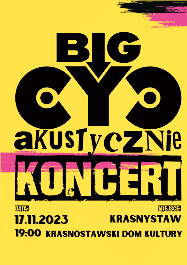 BIG CYC rusza w urodzinową trasę nie możesz tego przegapić. W Krasnymstawie zespół wystąpi w piątek 17 listopada 2023 r. o godz. 19:00 w Sali Widowiskowej Krasnostawskiego Domu Kultury. Bilety do nabycia na stronie biletyna.pl