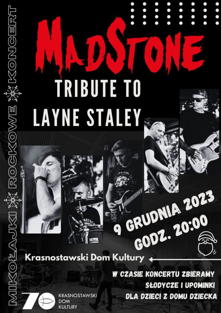 I właśnie 9 grudnia 2023 r. o godz. 20:00 w Sali Widowiskowej KDK w ramach „Mikołajek rockowych” odbędzie się piętnasty, jubileuszowy, a zarazem ostatni koncert zespołu MadStone z cyklu Tribute to Layne Staley. Obecnie zespół pracuje nad własnym materiałem, który z pewnością niebawem usłyszymy.