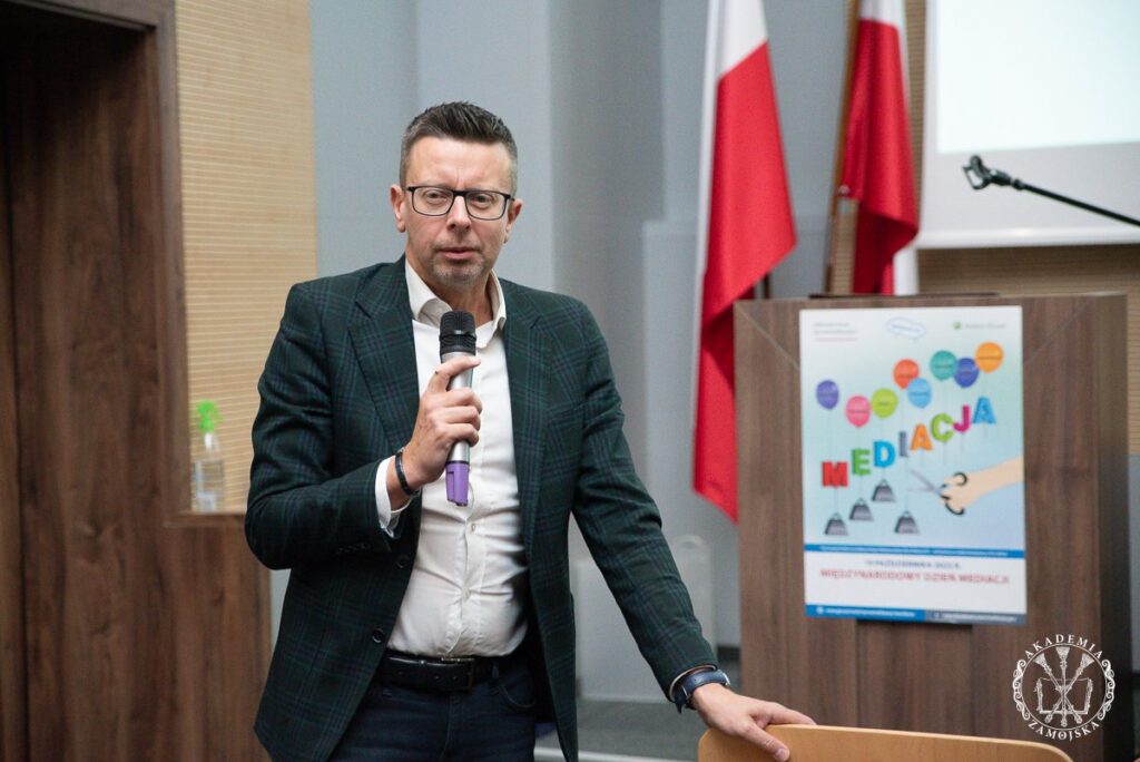 – Korzystając z uprzejmości prezesa Sądu Okręgowego w Zamościu SSO Mirosława Baranowskiego po raz kolejny Akademia Zamojska mogła skorzystać z przeprowadzenia seminarium prawniczego w siedzibie sądu okręgowego. Zajęcia były skierowane do studentów różnych kierunków studiów, którzy po uzyskaniu dyplomu ukończenia uczelni wyższej będą mogli rozważyć czy są zainteresowani wykonywaniem zawodu mediatora. Mediacja w Polsce dopiero się rozwija, a to stwarza szansę na zapotrzebowanie w przyszłości na tego rodzaju usługi. Niezwykłe zainteresowanie studentów wywoływała symulacja mediacji z udziałem strona i profesjonalnego mediatora, dlatego kolejne seminaria prawnicze organizowane przez Instytut Prawa AZ będą powiązane z elementami praktycznymi – mówi mec. dr Ryszard Pankiewicz EMBA, prorektora ds. kształcenia AZ i dyrektora Instytutu Prawa AZ.