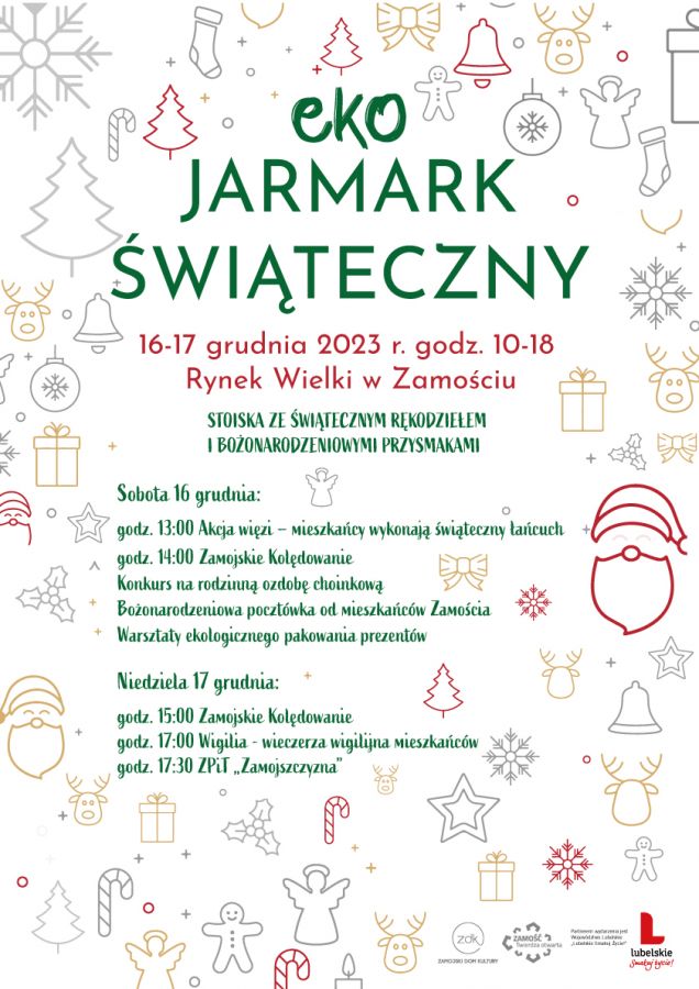 Miasto Zamość oraz Zamojski Dom Kultury zapraszają na Eko Jarmark Świąteczny. Poniżej publikujemy program wydarzenia.