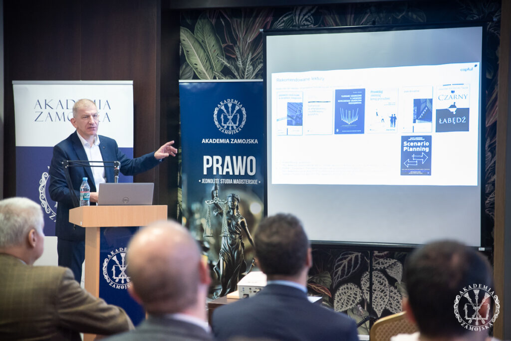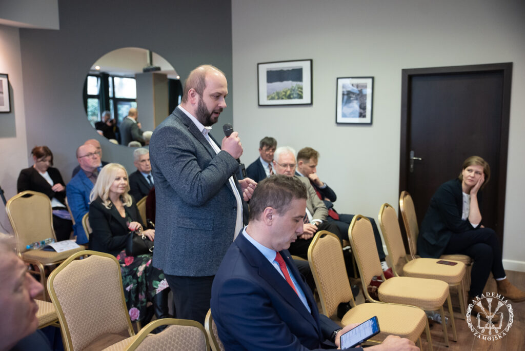 – Chodzi o połączenie trzech spraw: zagadnień ekonomicznych, zagadnień edukacyjnych oraz badań naukowych, które pokazują potrzeby naszego rynku pracy i sfery edukacji. Konferencja jest poświęcona rozpoznaniu tych relacji, jakie istnieją między edukacją, szeroko pojętym biznesem i przemysłem oraz badaniami naukowymi, a następnie wyciagnięcie jak najwięcej wniosków, które przyniosłyby korzyści i plan działań dla współpracujących ze sobą sfer edukacji i rynku pracy – powiedział rektor Akademii Zamojskiej dr hab. Paweł Skrzydlewski, prof. Ucz., który otworzył konferencję.