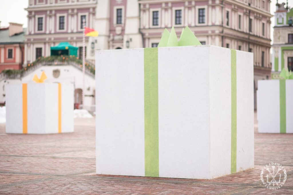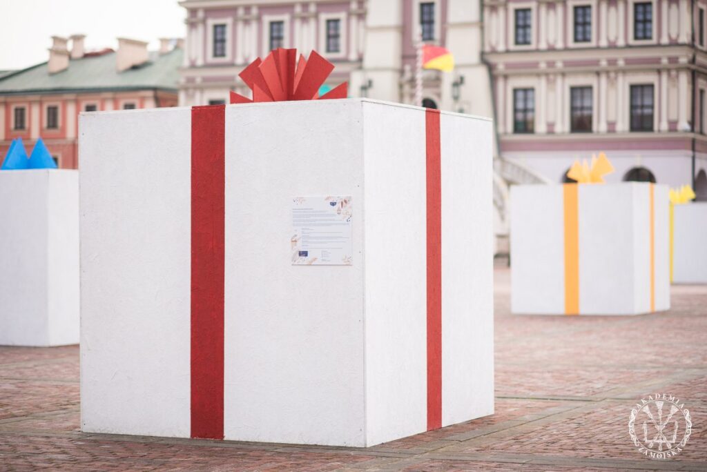 Tuż przed Świętami Bożego Narodzenia Wydział Techniczno–Informatyczny Akademii Zamojskiej podjął współpracę z Urzędem Miasta Zamość w zakresie wykonania kokard zdobiących dekoracje w kształcie prezentów, które przystroiły Rynek Wielki Miasta Zamościa.