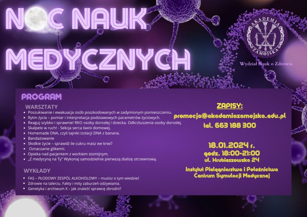 Akademia Zamojska zaprasza wszystkich uczniów szkół ponadpodstawowych do wzięcia udziału w wydarzeniu promującym nauki medyczne. WNZ AZ zorganizował event, podczas którego można będzie m.in. spróbować uratować poszkodowanych z zadymionego pomieszczenia, nauczyć się odczytywać podstawowe parametry życiowe, wykonać sekcję serca, czy wysłuchać wykładów dotyczących genetyki, odżywiania i FAS.