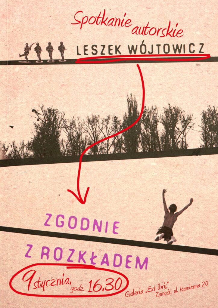Spotkanie odbędzie się 9 stycznia o godz. 16.30 w Galerii „ExLibris” Książnicy Zamojskiej przy ul. Kamiennej 20. Jego bohaterem będzie Leszek Wójtowicz, dziennikarz, reportażysta, poeta i satyryk. Okazją do spotkania jest nowy tomik poetycki „Zgodnie z rozkładem”.
