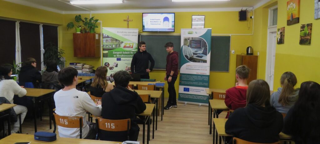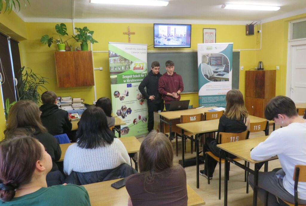 Uczniowie z Zespołu Szkół nr 1 w Hrubieszowie, kształcący się w zawodzie technik informatyk, podzielili się ze swoimi koleżankami i kolegami wiedzą i doświadczeniem zdobytymi podczas zagranicznego stażu w Grecji, przedstawiając prezentacje multimedialne.