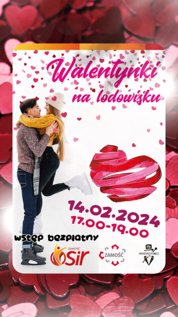14 lutego br. pary zakochanych będą mogły bezpłatnie skorzystać z lodowiska w godz. 17-19. O oprawę muzyczną święta zakochanych na zamojskim lodowisku zadba wodzirej DJ Pex.