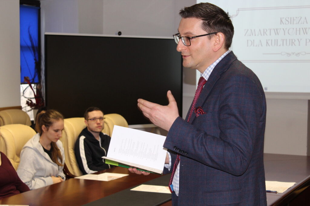 Zagadnienie „Programów ikonograficznych w kościołach zmartwychwstańców” poruszył dr Piotr Kondraciuk, dyrektor Instytutu Rynku Sztuki i Zarządzania w Kulturze AZ.