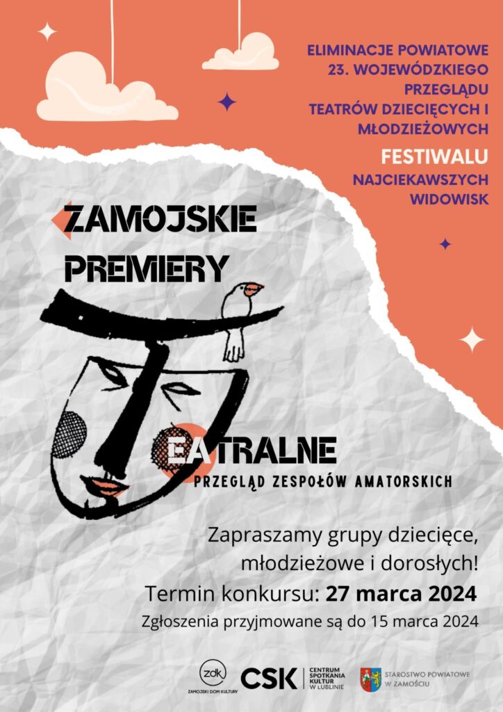 Zamojski Dom Kultury zaprasza teatry z Zamościa i powiatu zamojskiego do prezentacji spektakli na Zamojskich Premierach Teatralnych.