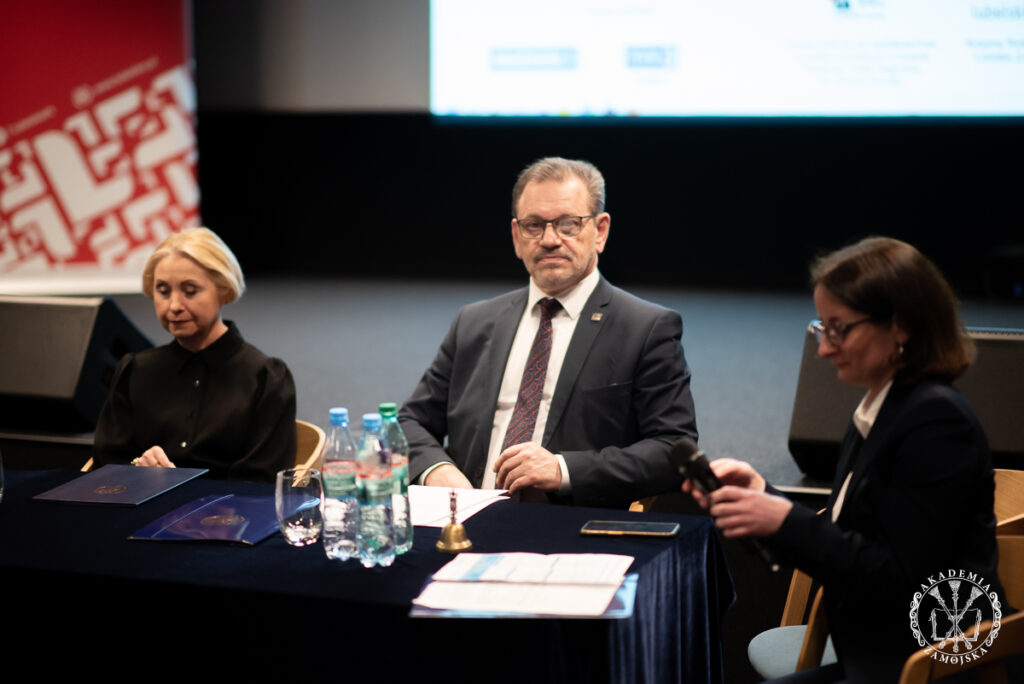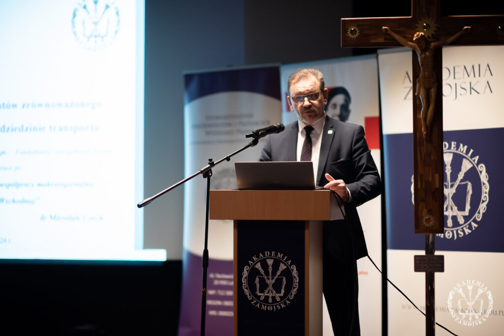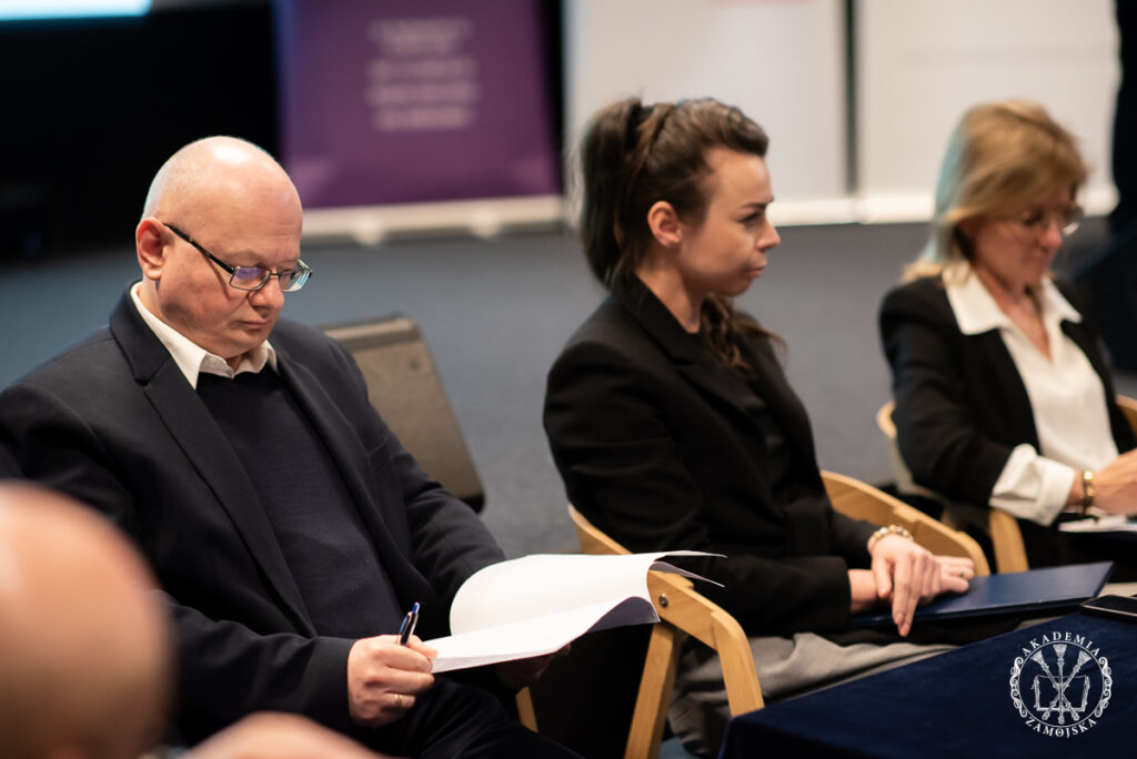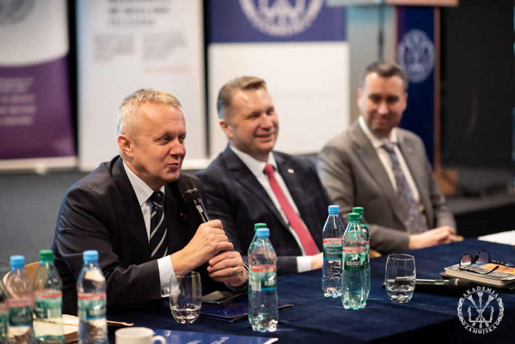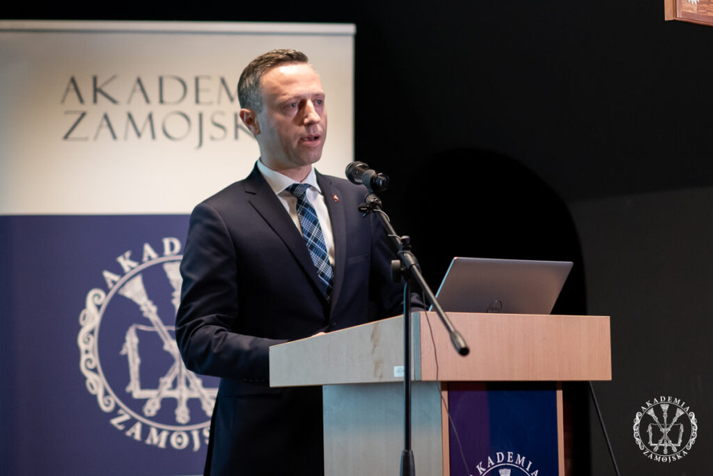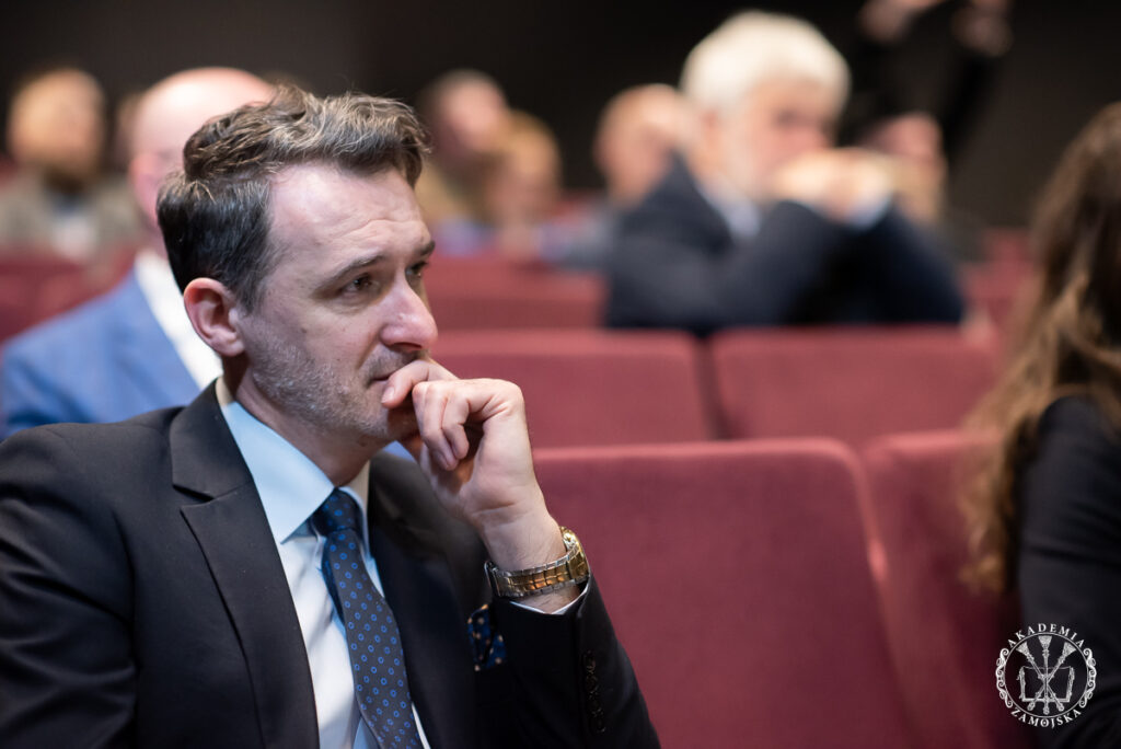 Cieszę się, że Instytut Prawa Akademii Zamojskiej nie tylko podejmuje działania związane z rozwojem jednolitych studiów magisterskich na kierunku prawo na naszej Uczelni, ale także wpisując się w tematykę dzisiejszej konferencji w sposób zrównoważony z pierwszym działaniem podejmuje trud rozwijania działalności naukowej. Mam zaszczy uczestniczyć czynnie w tym wydarzeniu i przewodniczyć jednej z sesji konferencji oraz wygłosić wykład obejmujący aspekt optyki prawnika w zakresie kwalifikacji kierownika podmiotu leczniczego w kontekście zrównoważonego rozwoju. Pragnę przy tej okazji dodać kilka słów o naszym Instytucie Prawa i podkreślić, że wszyscy pracownicy Instytutu są pracownikami naukowo-dydaktycznymi i posiadają specjalizacje naukowo-dydaktyczne w dziedzinie nauk prawnych, które są komplementarne z planowanymi kierunkami rozwoju Instytutu. Chciałbym także w tym kontekście zaprosić na kolejną konferencję naukową pt. Prawo i Medycyna organizowaną przez Instytut Prawa, która jest zaplanowana na 10 kwietnia br. Na tę konferencję przyjadą przedstawiciele nauki z różnych ośrodków uniwersyteckich w Polsce oraz wybitni specjaliści i eksperci z zakresu prawa medycznego. I na koniec z radością przypominam, że po raz trzeci będziemy rekrutować kandydatów na przyszłych prawników. Zapraszamy wszystkich zainteresowanych podjęciem tych prestiżowych i w umożliwiających wszechstronne wykształcenie studiów oraz dających szerokie perspektywy pracy – mówi mec. dr Ryszard Pankiewicz, prorektor ds. kształcenia, Dyrektor Instytutu Prawa Akademii Zamojskiej.