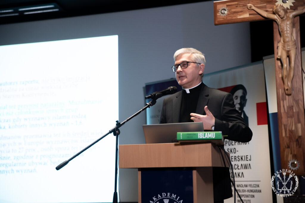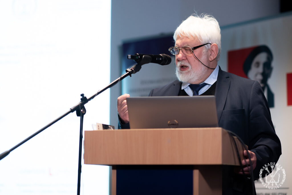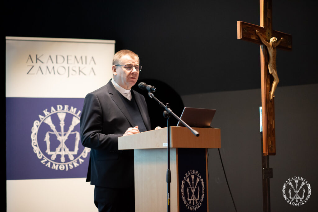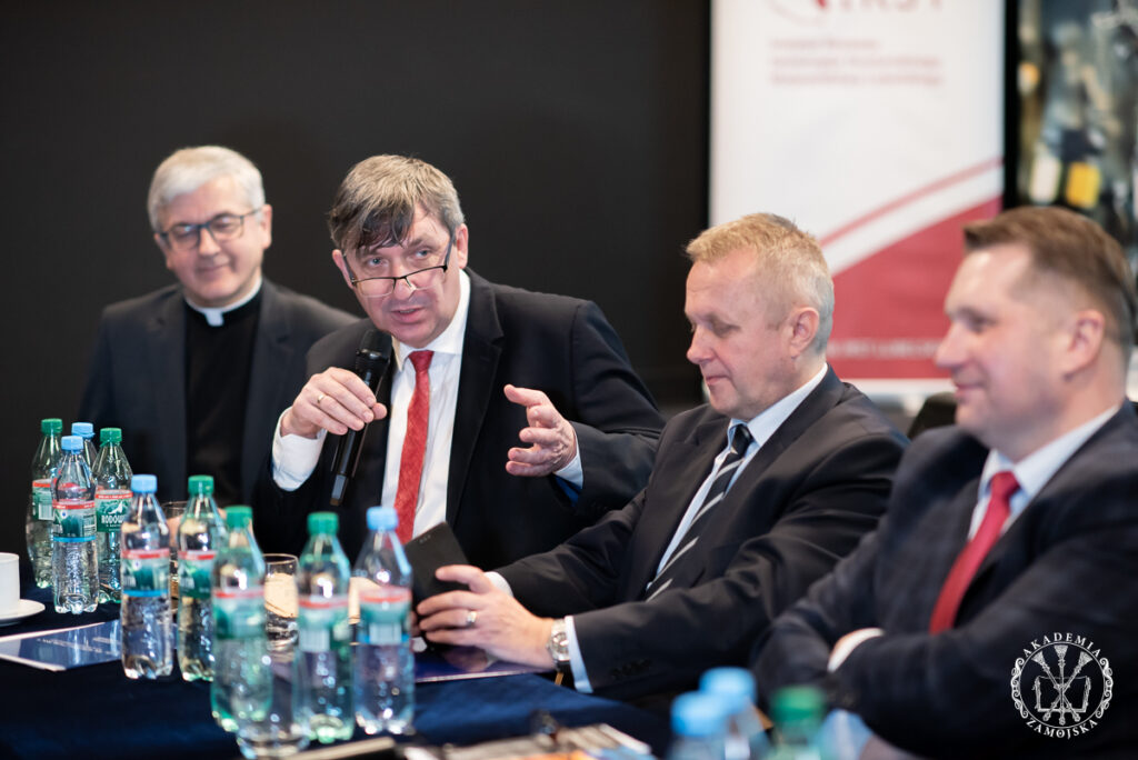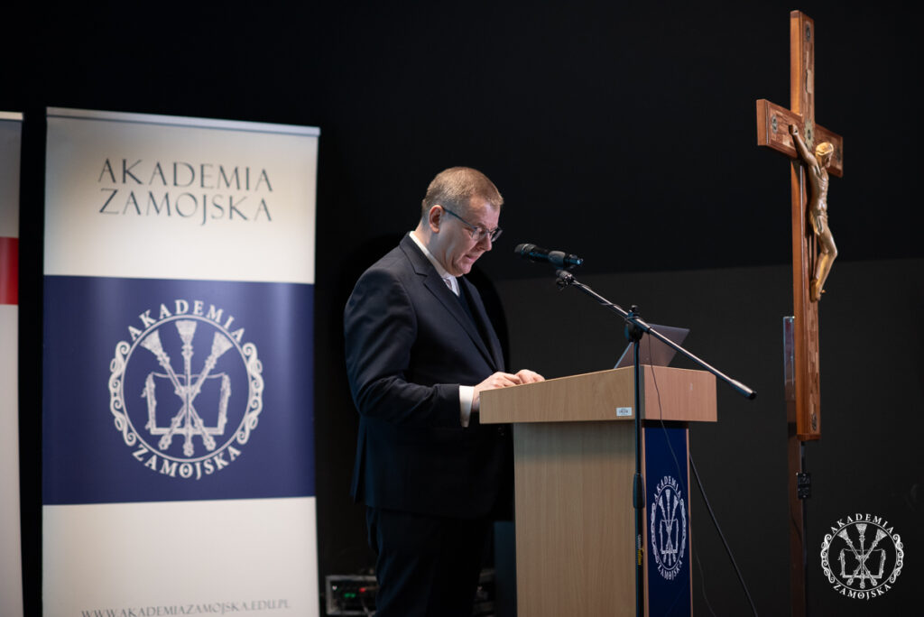 Europa była i jest miejscem formacji na miarę nie tylko ludzkiej natury, ale i celu ludzkiego życia. Dziś jest ogromna potrzeba przypominania i pokazywania działań, które umacniają autentyczną tożsamość europejską. Z perspektywy historycznej ta tożsamość opiera się na czterech elementach: trwałej rodzinie; poszanowaniu ludzkiej pracy, która daje nam dobrobyt i likwiduje instytucje niewolnictwa; obecności prawa w życiu publicznym, które wprowadza relacje społeczne między ludźmi sprawiedliwość; po czwarte na autonomii osoby ludzkiej – mówił rektor Akademii Zamojskiej dr hab. Paweł Skrzydlewski, prof. AZ. – Idea zrównoważonego rozwoju może być czytana na wiele różnych sposobów. Sam rozwój jest czymś dobrym, ponieważ wiąże się z doskonaleniem człowieka i życia społecznego, a także z rozwojem strony materialnej i technicznej. Czym innym jest ideologia zrównoważonego rozwoju, która często lansuje w życiu społecznym kwestie jak tzw. „Zielony Ład”, zeroemisyjność, politykę praw reprodukcyjnych, czy szereg różnych zagrożeń, które niestety nie mają nic wspólnego z autentycznym rozwojem – tłumaczył dr hab. Paweł Skrzydlewski, prof. AZ.