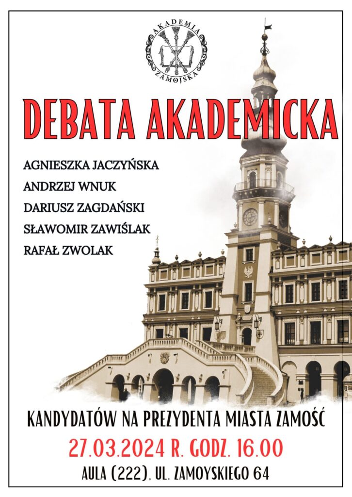 Debata odbędzie się 27 marca br. o godz. 16 w auli AZ przy ul. Zamoyskiego 64. Wydarzenie będzie transmitowane na kanale Akademii Zamojskiej w serwisie YouTube.