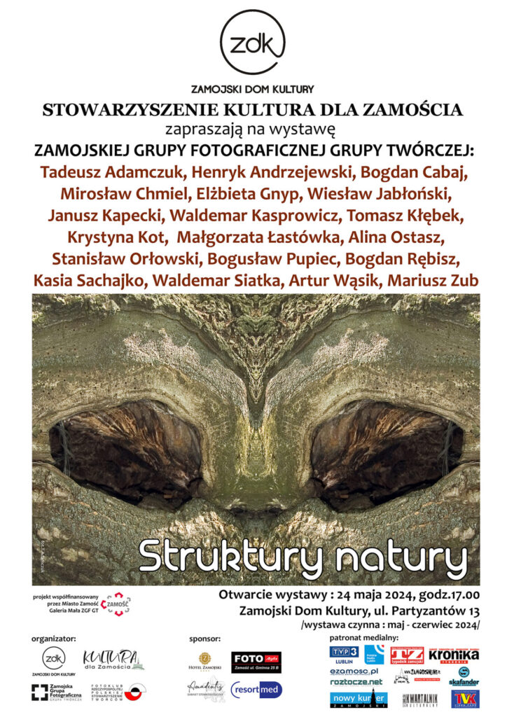 24 maja o godz. 17.00 w Zamojskim Domu Kultury odbędzie wystawa „Struktury natury”, której autorami są członkowie Zamojskiej Grupy Fotograficznej Grupy Twórczej.