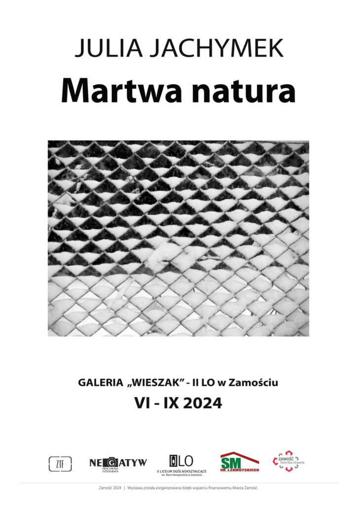 5 czerwca o godz. 10.30 w Galerii „Wieszak” w II LO im. M. Konopnickiej w Zamościu odbędzie się otwarcie wystawy „Martwa natura” autorstwa Julii Jachymek.