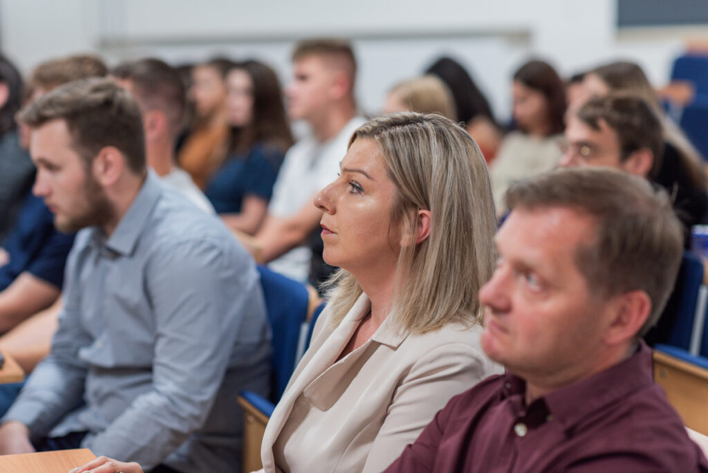 Podczas konferencji pożegnano prezes Studenckiego Koła Naukowego Przedsiębiorczości – Laurę Haniewską, która w tym roku akademickim kończy studia magisterskie w AZ. Studenci ze SKNP, Agata Bukszyńska i Tymon Matuszak, wręczyli koleżance kwiaty, dziękując jej za wkład pracy, zaangażowanie i pomoc w organizacji wielu przedsięwzięć.