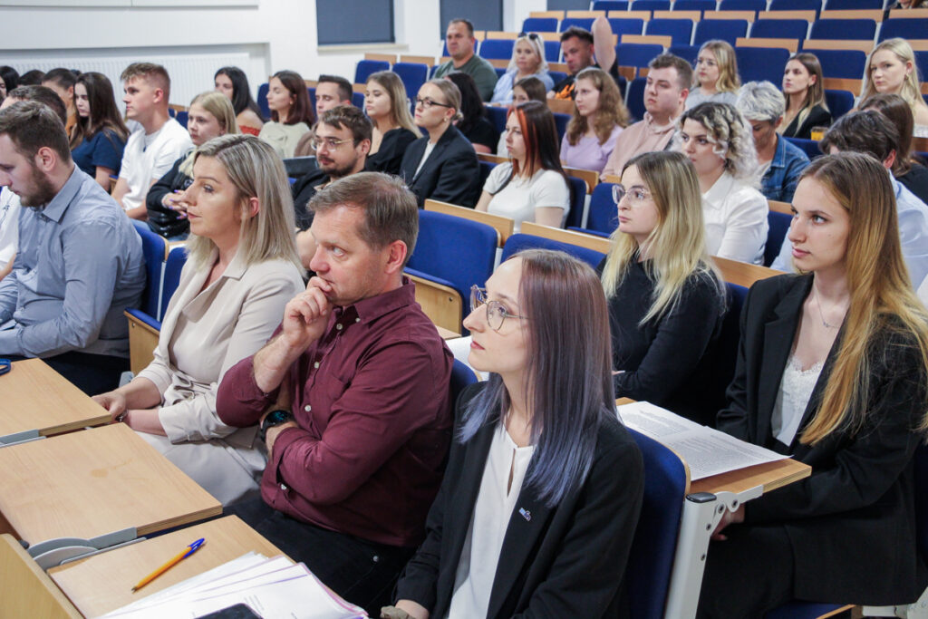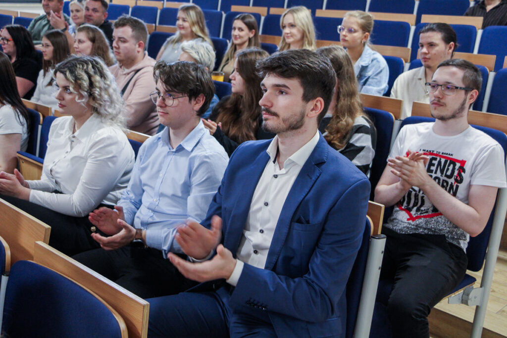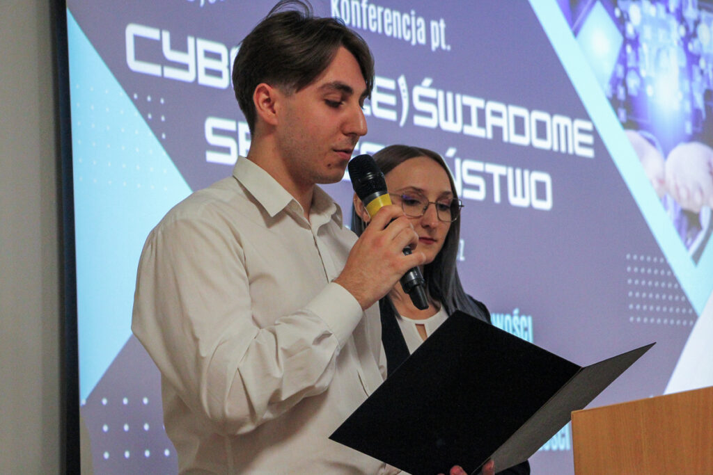 Konferencja studencka „Cyber(nie)świadome społeczeństwo” odbyła się 4 czerwca br. w auli Wydziału Nauk Społecznych i Humanistycznych AZ. Prowadzącymi byli studenci z kierunku finanse i rachunkowość, Agata Bukszyńska i Tymon Matuszak.