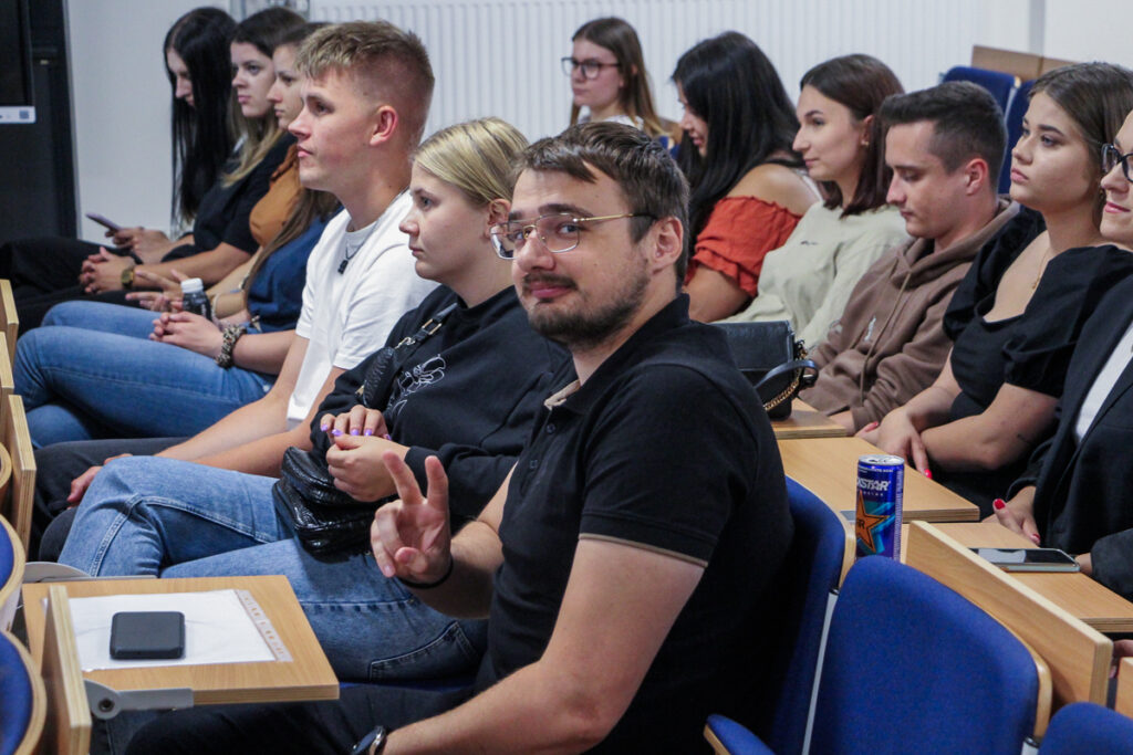 Joanna Bezpalko i Tetiana Kurylo (studentki II roku FiR) zaprezentowały temat „Fake newsów i weryfikacji informacji w mediach”. Przedstawiono rodzaje oraz powody powstawania fake newsów. Ważnym elementem była odpowiedź na pytanie „Dlaczego fake newsy są niebezpieczne?”. Nie zabrakło również przykładów fake newsów takich jak: . „PESEL dla Ukraińców to akcja przesiedleńcza” czy „Sieci 5G są kontrolowane przez rządy lub korporacje”.