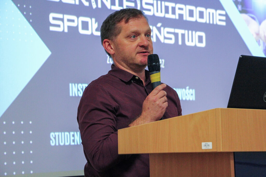 Jak zabezpieczyć swoje dane osobowe i oszczędności życia przed kradzieżą lub wyłudzeniem przez cyberprzestępców, jak odróżnić informację medialną od fake newsów, na czym polega phishing – tego wszystkiego można było dowiedzieć się podczas konferencji studenckiej pt. „Cyber(nie)świadome społeczeństwo” zorganizowanej przez Instytut Finansów i Rachunkowości Akademii Zamojskiej i Studenckie Koło Naukowe Przedsiębiorczości.