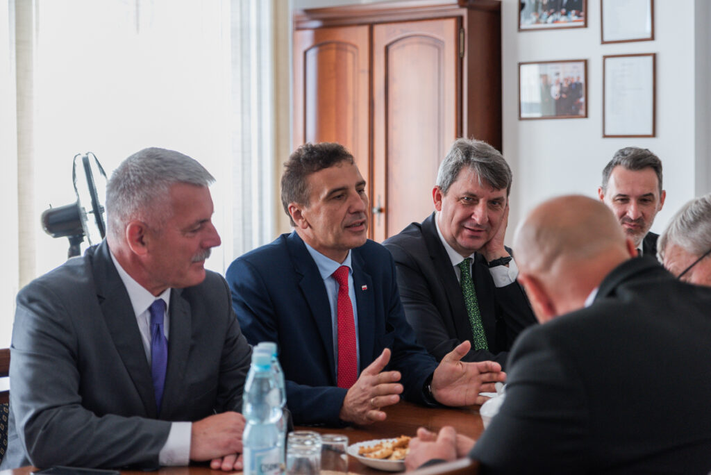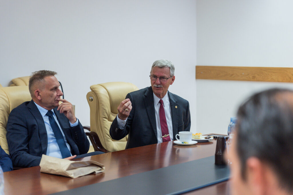 –  Szukamy w Polsce partnerów w dziedzinie edukacji i nauki oraz partnerstw gospodarczych. Widzimy wiele możliwości współpracy uczelni amerykańskich i Akademii Zamojskiej. Mamy w planach organizację wymiany studentów. W Ameryce działa uczelnia założona przez prezydencką rodzinę Bushów, gdzie funkcjonuje kierunek bezpieczeństwo międzynarodowe, w Akademii istnieje podobny kierunek, co daje szansę współpracy i prowadzenia studiów, które pozwoliłyby na uzyskanie dyplomu polskiej i amerykańskiej uczelni. Część zajęć mogłaby się odbywać online. Jestem polskim Teksańczykiem od pięciu pokoleń i chciałbym aby ta współpraca polsko-amerykańska układała się jak najlepiej. W ciągu trzynastu lat funkcjonującej już współpracy z polskimi uczelniami już blisko tysiąc osób wzięło udział w wymianie studentów i naukowców, a także artystów – mówił prof. dr Jim Mazurkiewicz o możliwościach współpracy środowiska akademickiego Zamościa i uczelni amerykańskich. Po uroczystości wręczenia Lauru Akademii Zamojskiej spotkał się on ze studentami AZ oraz przedstawicielami władz samorządowych i parlamentarzystami: prezydentem Zamościa Rafałem Zwolakiem oraz starostą zamojskim Stanisławem Grześko, posłem na Sejm dr. Jarosławem Sachajko. Wziął również  udział w spotkaniu z zamojskimi przedsiębiorcami, z którymi dyskutował o możliwościach polsko-amerykańskiej współpracy biznesowej.