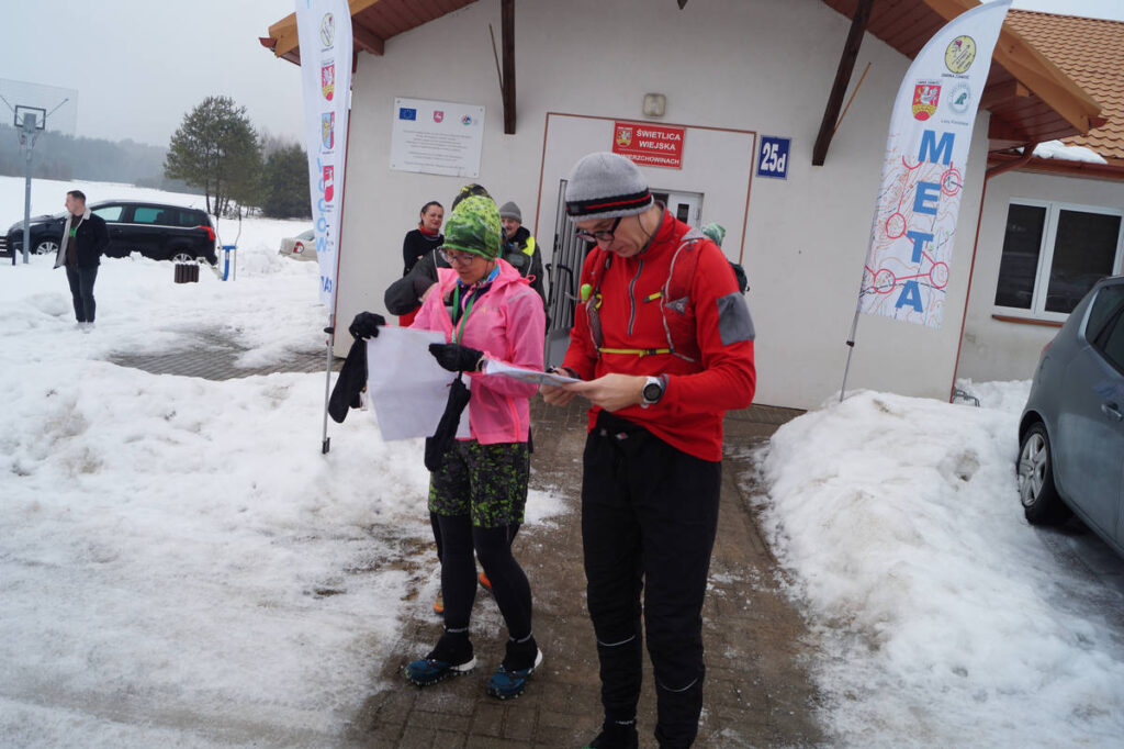 Mokry śnieg, lód, niewidoczne ścieżki i drogi leśne wymagały dużo wysiłku i skutecznie utrudniały nawigację w lesie pomiędzy miejscowościami: Wierzchowiny, Wólka Wieprzecka, Kąty II, Wychody.  Jednak nikt się nie poddał i w wyznaczonym limicie czasu zameldował się na mecie biegu, zlokalizowanej w świetlicy wiejskiej sołectwa Wierzchowiny, gdzie czekał ciepły poczęstunek przygotowany przez panie z KGW Wierzchowiny.