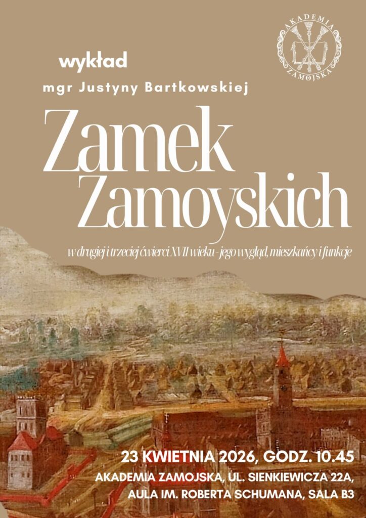 Akademia Zamojska zaprasza na wykład mgr Justyny Bartkowskiej „Zamek Zamoyskich w drugiej i trzeciej ćwierci XVII wieku – jego wygląd, mieszkańcy i funkcje”.